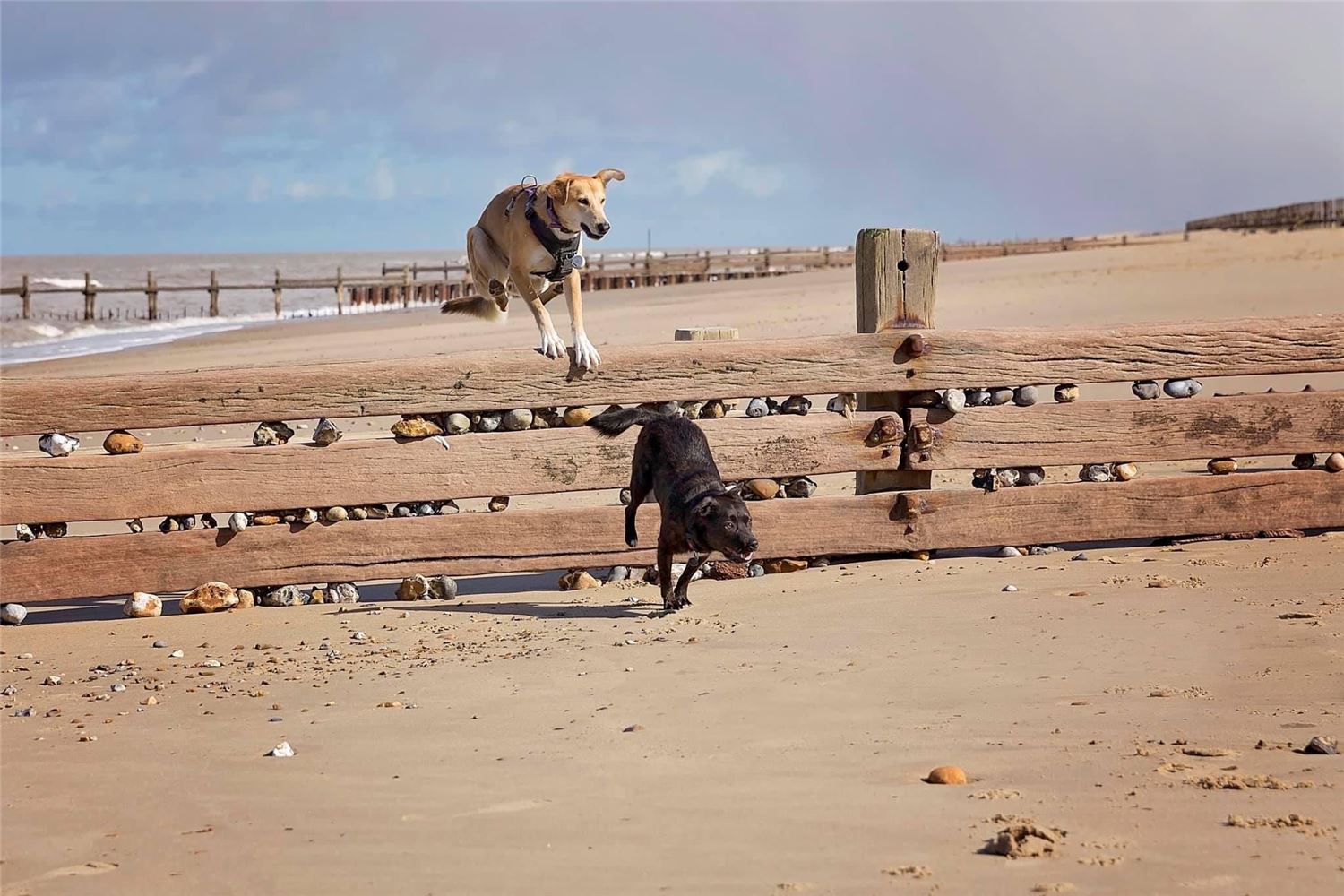 There's a dog friendly fish and chip restaurant and a dog friendly cafe (with ice cream bar in the summer) on the seafront, just 1 mile walk away (1.6 km). Plus one of two local shops.